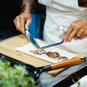 У нас четыре повара и стажёр. Официанты тоже являются поварами — иногда им приходится готовить соус или вместе с поварами доготавливать блюдо.
