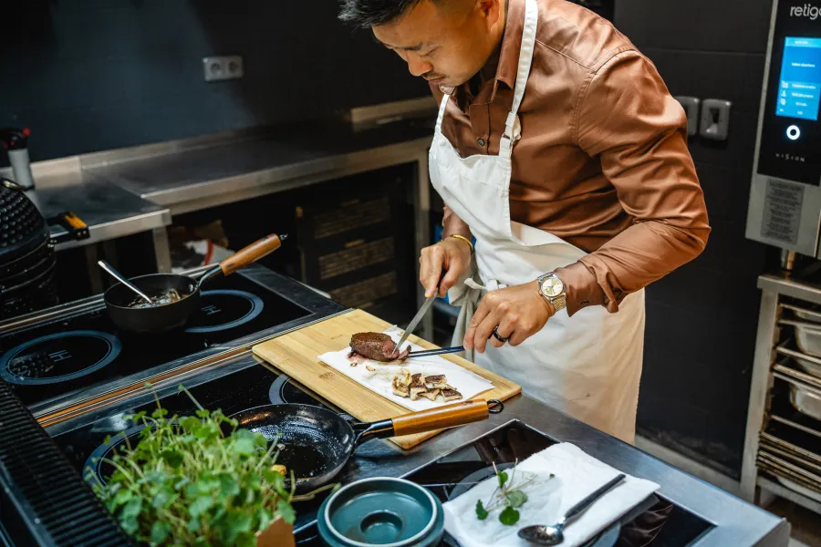 Наш ресторан ориентирован главным образом на дегустационное меню и предлагает североазиатскую кухню. Это сочетание северной философии использования локальных продуктов и кулинарных техник — таких как ферментация, маринование, засолка, копчение. К этому мы добавляем азиатские вкусы. Мы тщательно отбираем самые интересные специи из Азии, в основном из Японии, Вьетнама, Таиланда, Кореи и Китая.